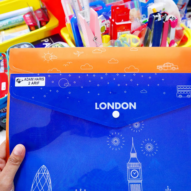 Penting jugak. Pocket file. Sebab budak-budak ni dekat sekolah banyak guna kertas, lagi-lagi standard one during the first month. Banyak drawing, coloring, writing on paper.