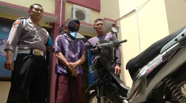 Suspek ditahan polis ketika sedang bekerja. Motosikal, jaket, helmet dan senjata yang digunakan ketika kejadian turut dirampas.