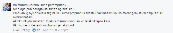 Di ruangan komen video tersebut, netizen kesal dengan penerbitan iklan produk yang dianggap tidak sensitif dan jelas sekali mempersendakan maruah kaum wanita. Malah, beberapa individu menuntut orang ramai melaporkan video itu kepada Facebook kerana telah mengguris perasaan golongan wanita.