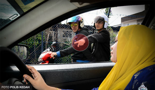 SENTIASA berwaspada, taktik yang digunakan penjenayah yang cuba melakukan rompakan terhadap pemandu kereta yang sedang memandu di jalan raya.