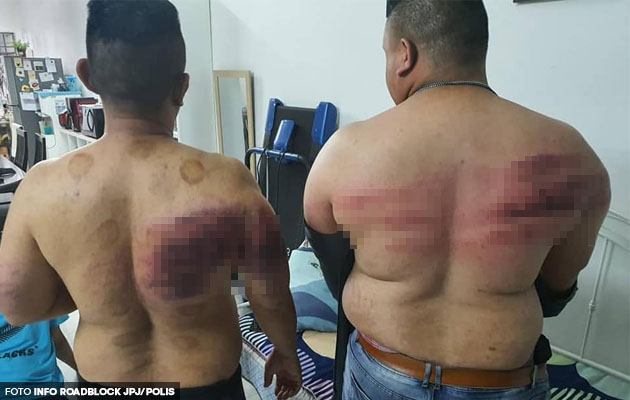 Dua lelaki mengalami lebam dan luka teruk di bahagian belakang badan akibat dipukul serta diugut dengan senjata api dalam kejadian yang berlaku pada Selasa, 13 April 2021 di sebuah kondominium di Jalan Pinang, Kuala Lumpur.