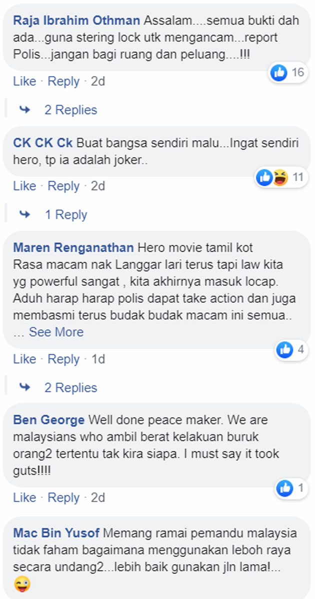 Di media sosial, netizen menyelar tindakan dua pemandu kereta itu yang jelas sekali melakukan kesalahan menyalahguna lorong kecemasan dan berlagak samseng di jalan raya.
