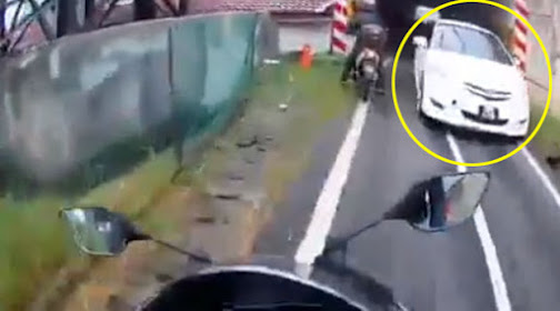 Seperti kejadian yang dilalui oleh seorang penunggang motosikal jenis Yamaha R15 ini terpaksa merempuh tembok bagi mengelak pertembungan dengan sebuah kereta menyalahgunakan lorong motosikal.
