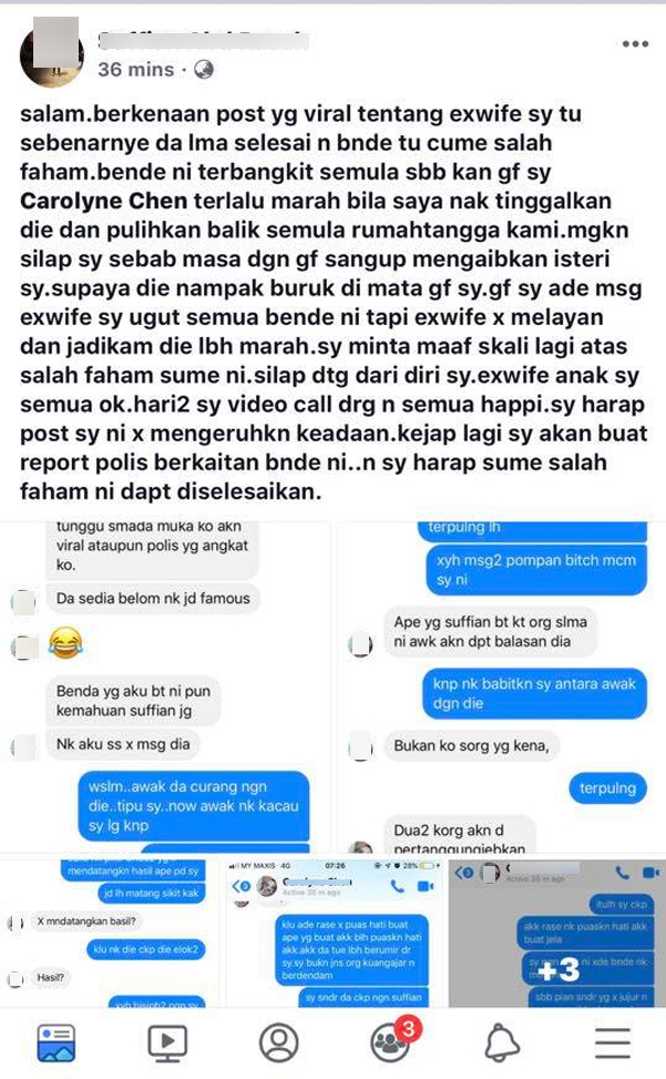 “Salam, berkenaan post yang viral tentang bekas isteri saya itu sebenarnya sudah lama selesai dan benda itu cuma salah faham.
