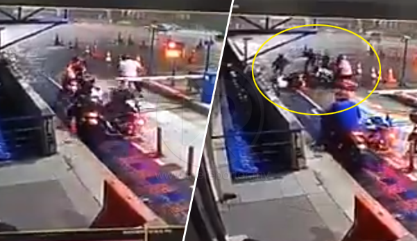 Viral di media sosial video kemalangan di lorong motosikal di plaza tol Lebuhraya AKLEH sehingga mencetuskan pergaduhan.