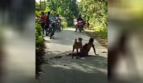 Menurut sumber, kejadian itu berlaku di Kampung Dato Syed Nahar, Kuah, Langkawi baru-baru ini dan video menunjukkan mangsa duduk di tengah jalan sambil dikawal oleh anjing itu.