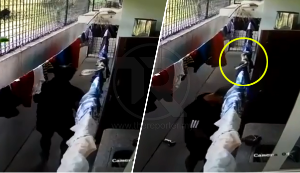 Klip video berdurasi 38 saat yang tidak dinyatakan lokasi kejadian tetapi berlaku pada tahun 2018 pada jam 5.12 petang menunjukkan mangsa pergi ke bahagian belakang kediamannya untuk menyidai pakaian.