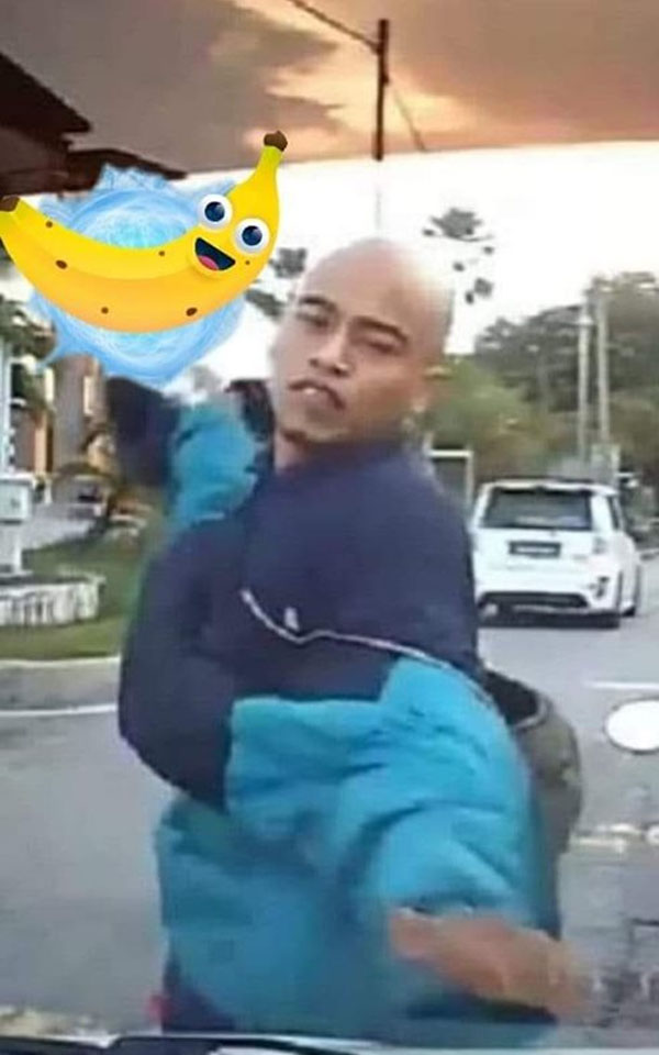 Viral di media sosial video rakaman dashcam yang menunjukkan seorang penunggang motosikal menghentak cermin depan sebuah kereta.