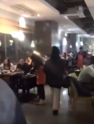Kejadian itu berlaku di sebuah restoran di Chongqing, selatan barat China.