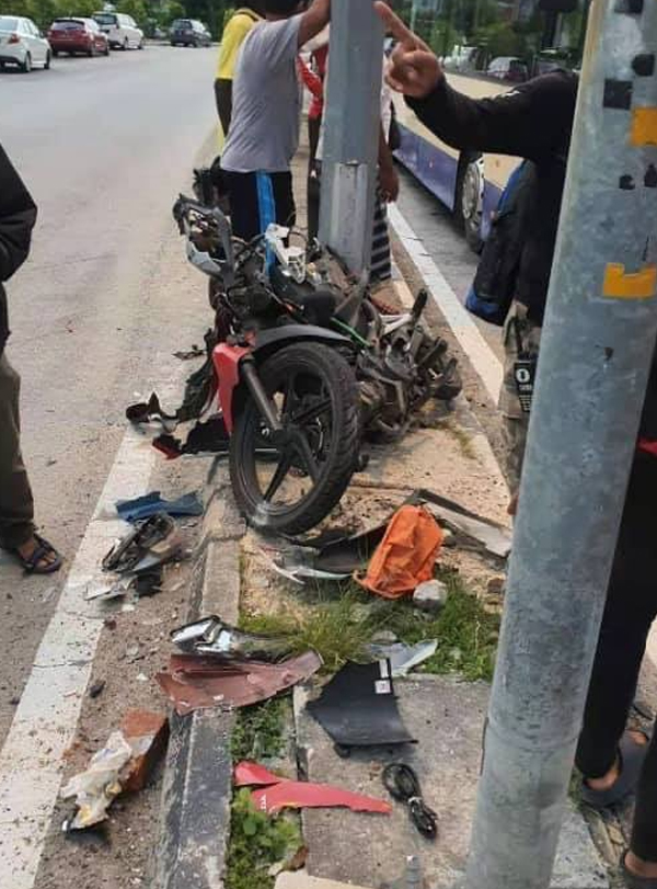 Ketua Polis Daerah Barat Daya, Superintendan A A Anbalagan berkata, kejadian itu turut melibatkan sebuah lagi motosikal dan dua buah kereta di mana pemandu kereta Suzuki Swift dan dua anaknya turut cedera.