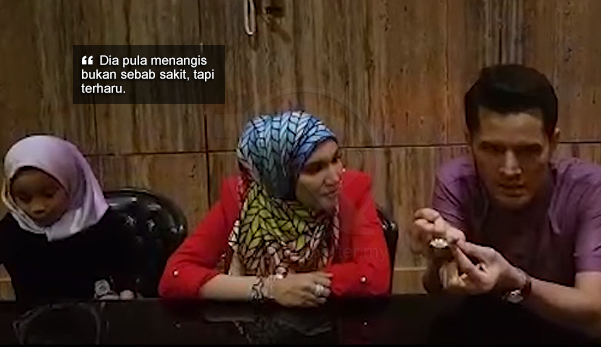 “Dia pula menangis bukan sebab sakit, tapi terharu,” kata isterinya.