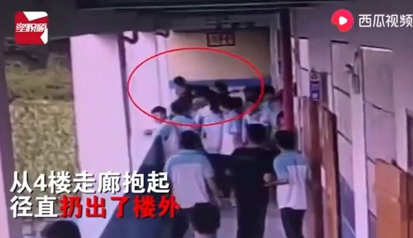 Viral di media sosial China, video rakaman kamera litar tertutup (CCTV) yang menunjukkan seorang pelajar lelaki dicampak dari tingkat empat bangunan sekolahnya oleh pelajar lain.