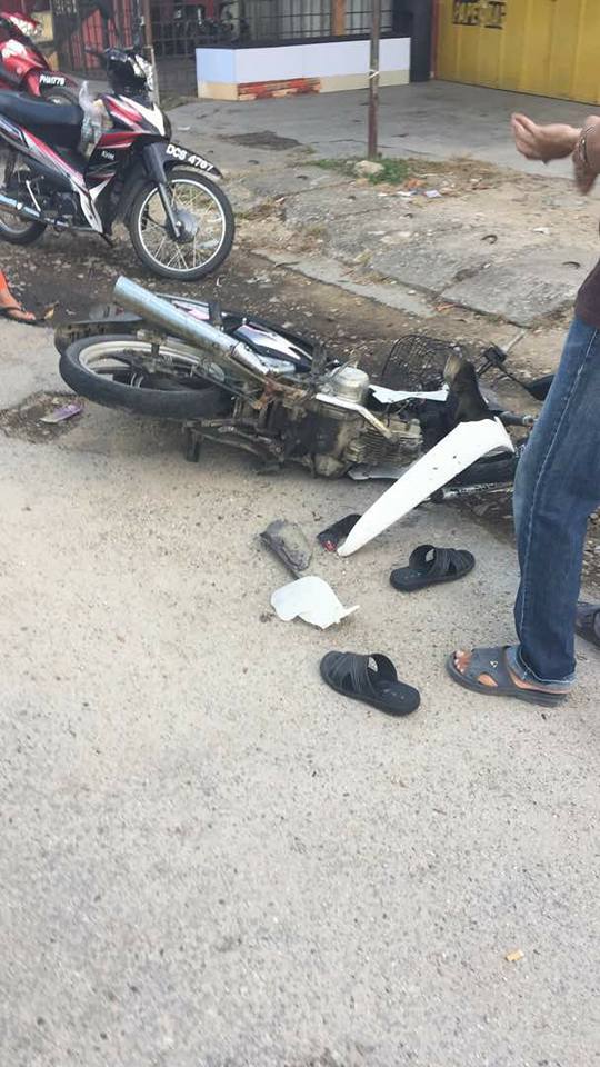 Kemalangan itu menyebabkan mangsa melambung sebelum terhempas ke atas jalan raya, manakala motosikalnya rosak akibat rempuhan itu.