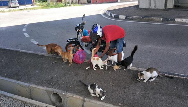 Menurut Azman Ali yagn berkongsi gambar tersebut di Facebook berkata, lelaki itu bekerja menjaga tempat letak kereta di Bukit Mertajam, Pulau Pinang dan dia menggunakan separuh atau lebih dari duit gajinya untuk membeli makanan kepada haiwan terbiar itu.