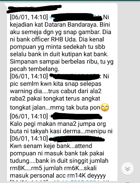 Ibu kepada dua anak berusia 19 dan 22 tahun itu menjelaskan, dia bukan menipu masyarakat seperti yang didakwa kerana dia memang berstatus Orang Kurang Upaya (OKU) penglihatan, termasuk dua anaknya.