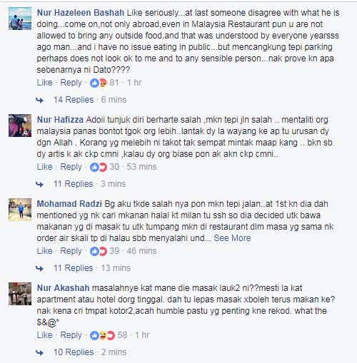 Bagaimanapun bagi Chef Wan, tindakan itu tidak sepatutnya dilakukan. Lagipun Dato’ Aliff Syukri bukannya tak ada duit sehingga terpaksa makan di tepi jalan?
